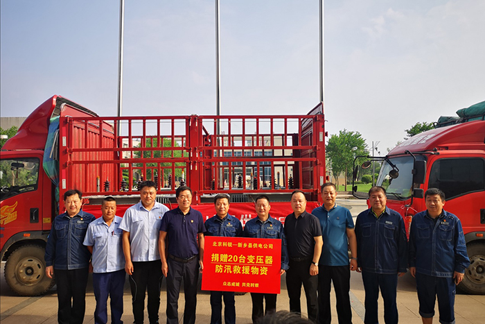 災情就是命令!搶險就是責任!智能電氣事業(yè)部和變壓器事業(yè)部迅速安排挑選捐贈產(chǎn)品并逐一進行檢測。公司黨支部積極落實捐贈過程中的各項工作。在各部門配合下,第一批捐贈物資20臺變壓器于7月23日下午2:10分完成裝車,4輛車滿載著北京科銳人對河南人民的愛,駛向新鄉(xiāng)縣供電公司。第二批捐贈物資15臺(套)開關設備于7月23日下午7:05分從北京懷柔生產(chǎn)基地出發(fā),滿載著北京科銳人對河南電網(wǎng)的愛,駛向新密市供電公司。