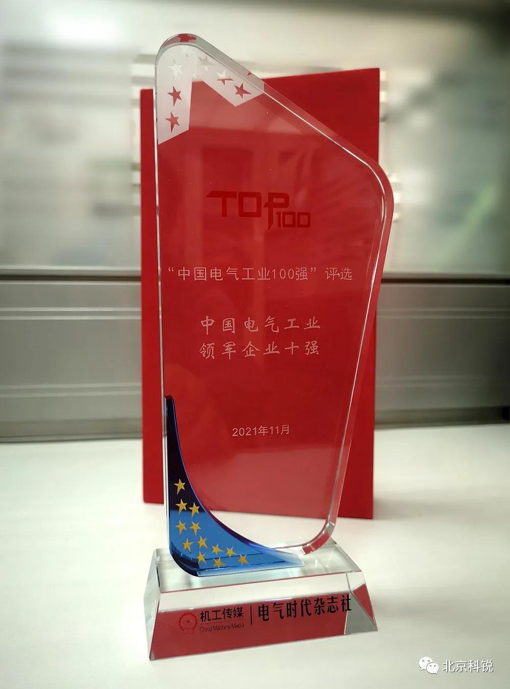 北京科銳榮獲“第21屆中國電氣工業(yè)100強”及“領(lǐng)軍企業(yè)10強”稱號